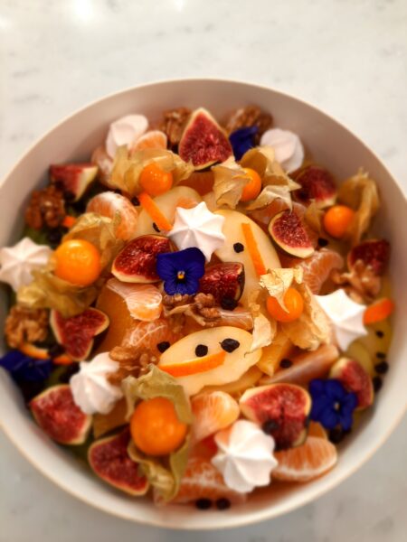 Fruits de saison (raisins, pommes, poires, figues, fraises… en fonction du marché)